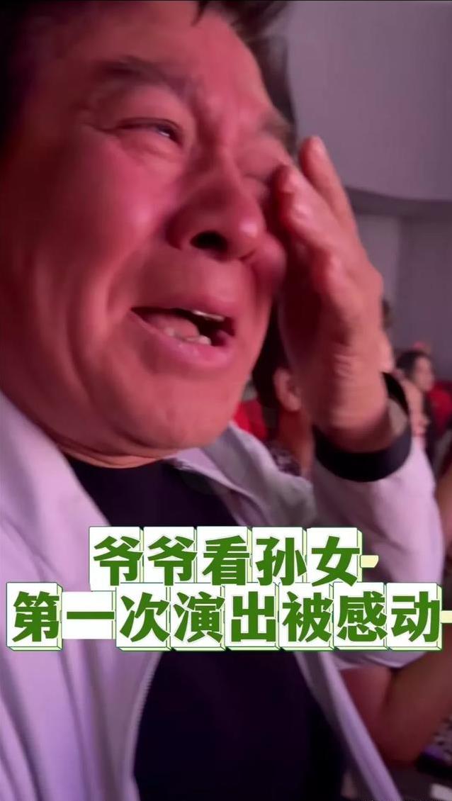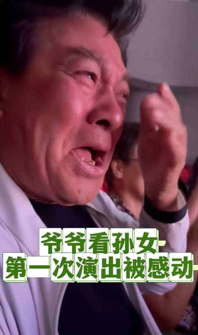 71岁的朱时茂,坐在观众席上,眼睛直勾勾盯着台上。台上是他6岁的孙女朱星潼,第一次登台表演,小姑娘唱着歌,牵着旁边的小伙伴,脸上一点不慌张。朱时茂看着看着,眼泪就止不住了,手里攥着纸巾,一个劲儿地擦眼睛,脸上却带着笑。这画面,谁看了不得说一句:这爷爷也太疼孙女了!